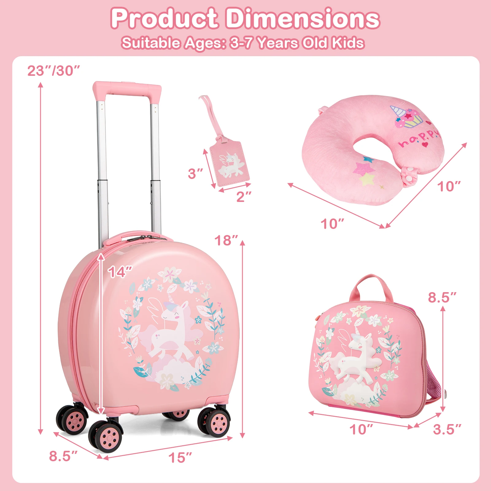 Travel in style and fun! This colorful 4-piece luggage set makes family trips exciting while teaching kids independence and responsibility.