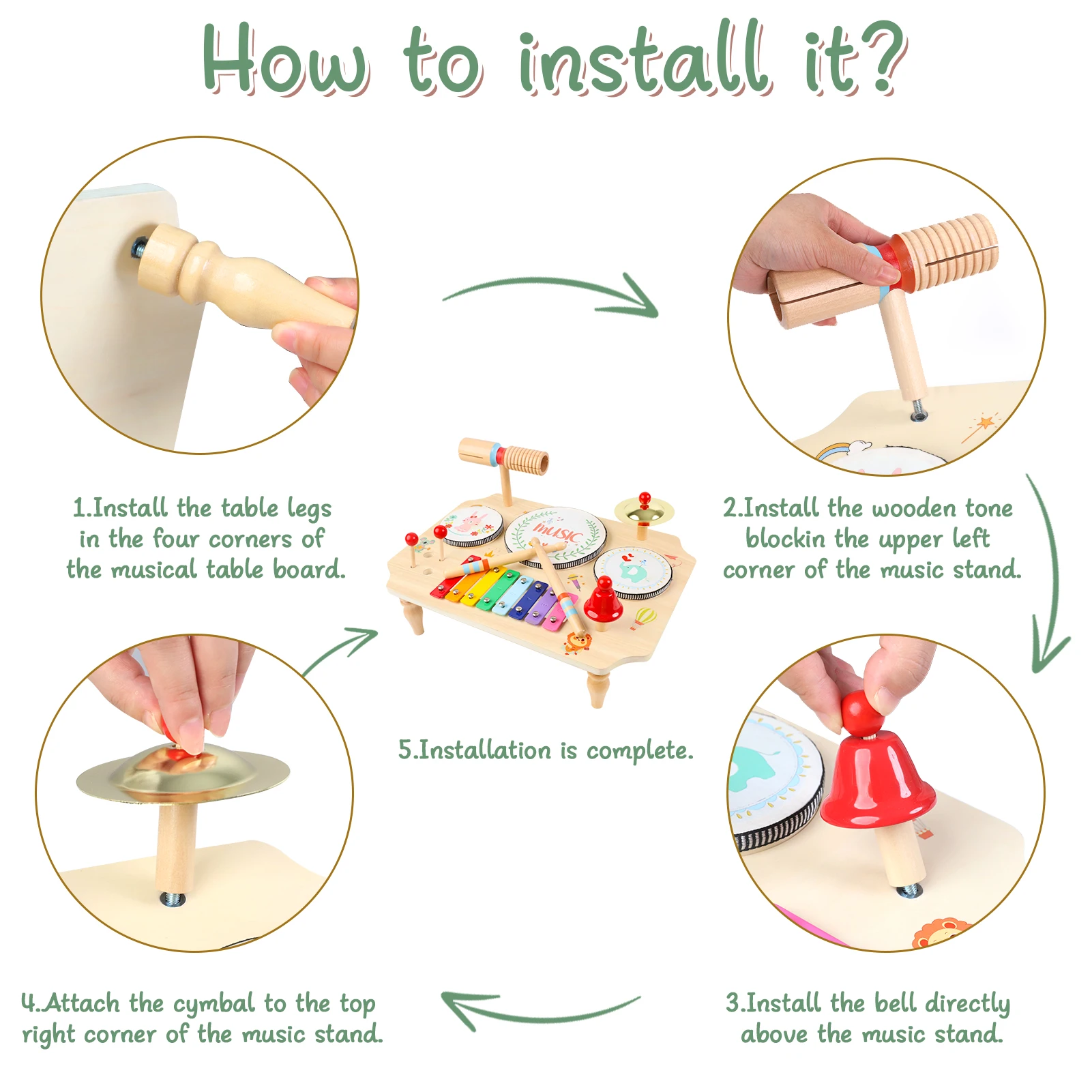 - Multi-Instrument Play: Combines a drum, xylophone, and percussion instruments in one set.